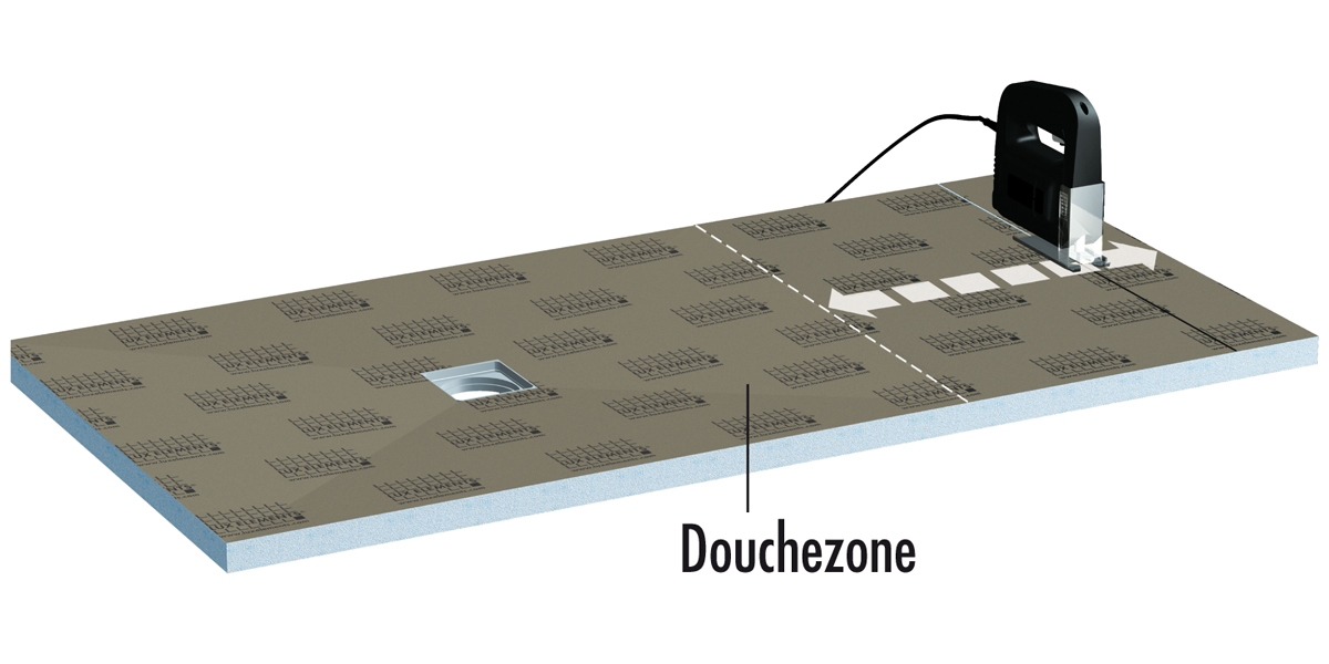 Douchebodem in de lengte inkortbaar door zone zonder afschot